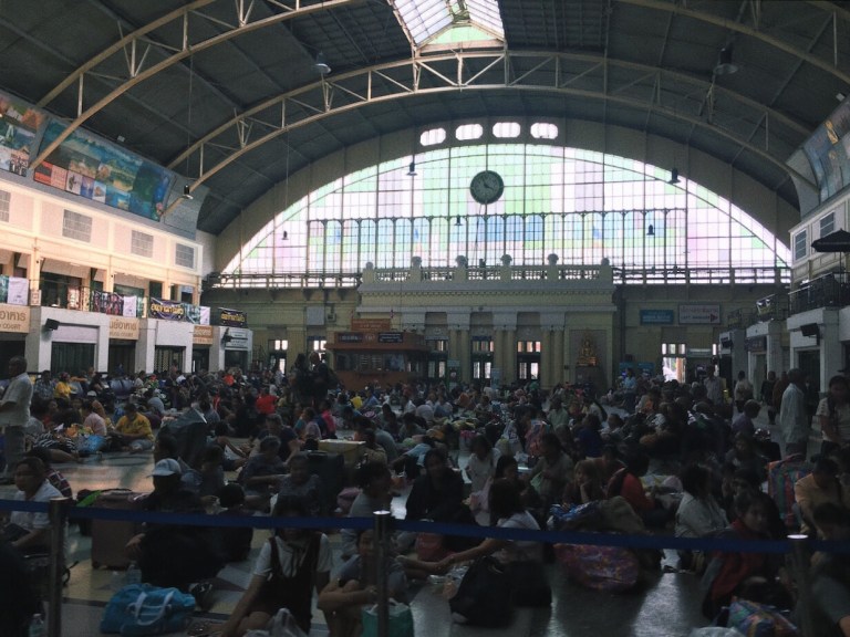 Once we had left our bags in the room, I changed into something more comfortable and we headed to the main train station at Hua Lamphong [สถานีหัวลำโพง, Sthani hawlaphong] to get our tickets for our train to Cambodia! Hua Lamphong was a mere 2km away, but the heat and uneven roads nearly killed us! Sweat drenched, we arrived only to be told by the counter staff that tickets could only be bought on the day of departure itself! Well, at least we got an impromptu workout out of the trek.