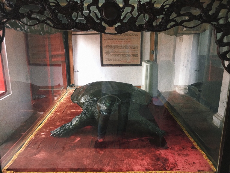 After lunch, we took a Grab to The Temple of The Jade Mountain [Đền Ngọc Sơn], located on an island in Hoan Kiem Lake. Inside the temple lay a taxidermied turtle: said to be of the same species as a mythologically important turtle in Vietnam. Admission to the temple cost 30000 VND/2 SGD, which was well worth it to catch a glimpse of the turtle alone.