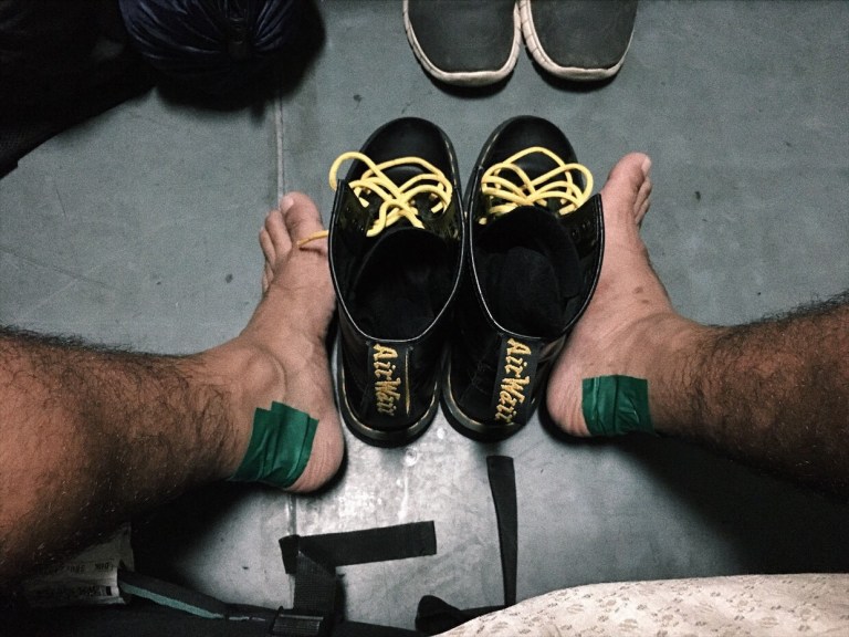 Tape on Ryan’s feet to stop them from being completely destroyed by Vietnam.