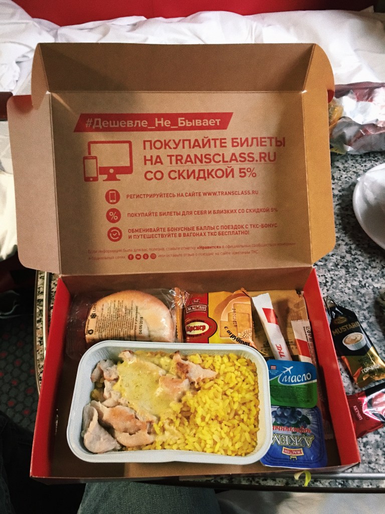 For this leg of the journey to Moscow, I had bought tickets on a “premium” train. I wanted to see how different it would be from the standard train. It turns out that “premium” trains on the Trans-Siberian are almost infinitely fancier. Although there were still four beds to a cabin, the cabins themselves seemed wider, the beds seemed wider, and there was even a TV. The staff on board provided great service, and the ticket even included a meal.