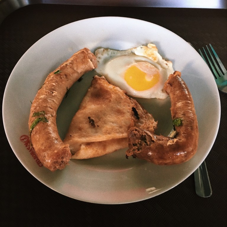 Since I reached the station early, I decided to have some breakfast first at the station cafe. It was a cafeteria style eatery, much like many eateries in Russia are. I got some mystery-meat sausage, some eggs, and some Russian pancakes.