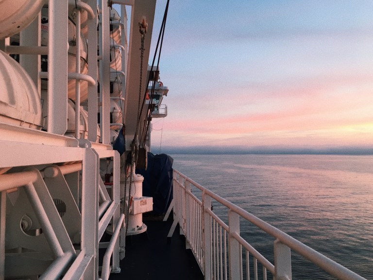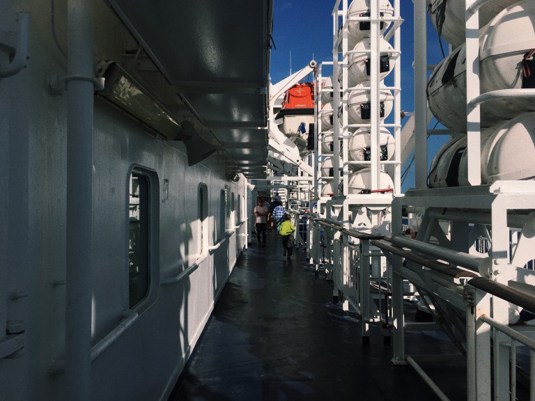 At 5.30pm, the gates finally opened and us passengers could finally board the ferry. By the time I arrived in my cabin, it was 6pm, and the ferry began leaving the terminal.