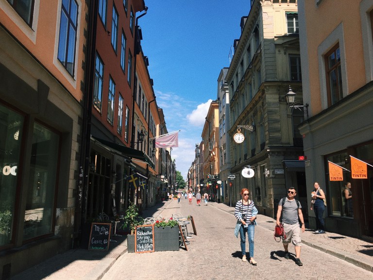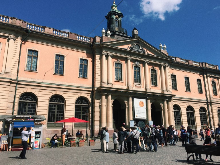 The narrow streets of Gamla Stan and the Nobel Museum.