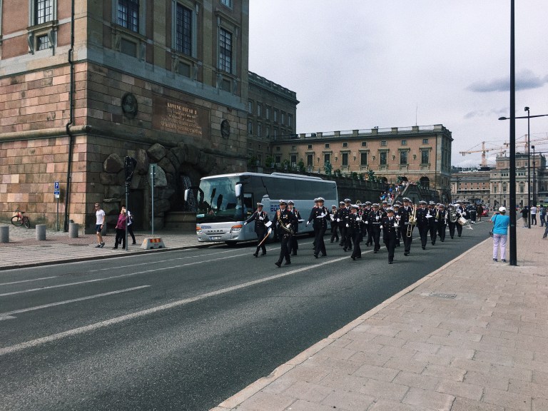Just around the corner from the museum is the Royal Palace. I was not planning on visiting the Royal Palace, so I just strolled past it. However, as I was leaving the area, I spotted a contingent of troops marching accompanied by a military band. They were marching towards the Royal Palace. A quick Google revealed that it was time for the daily changing of the guard ceremony. I was lucky enough to be at the right place at the right time.