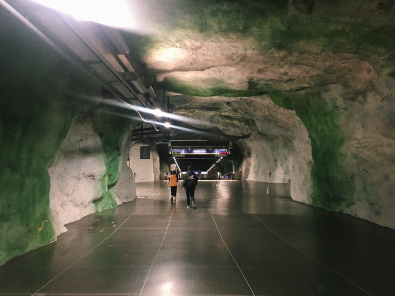 The Stockholm metro retains bare walls in some stations.