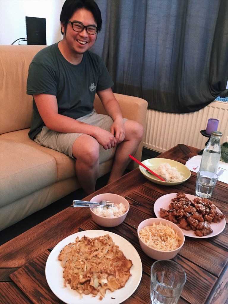 After almost an hour of chef-ing, dinner was finally ready! I guess working for your food really does make it taste better. Of course, it could also be the fact that the last time I had Asian food was almost a month ago. I think it was probably both. We managed to finish almost everything, which was surprising as it felt like we had prepared too much food at the start.