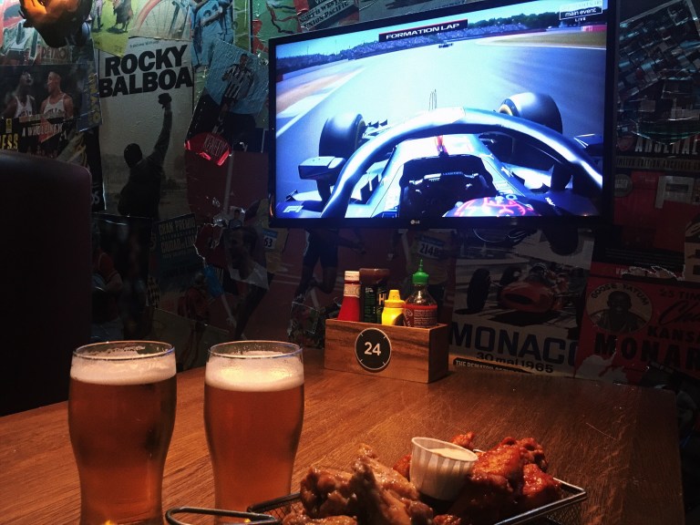 After wandering the alleys of Camden Market, I met Wenke at a bar near London Bridge for some drinks, and to catch the F1 Silverstone Grand Prix. The race began at 2pm, and we watched it over some wings and beer.